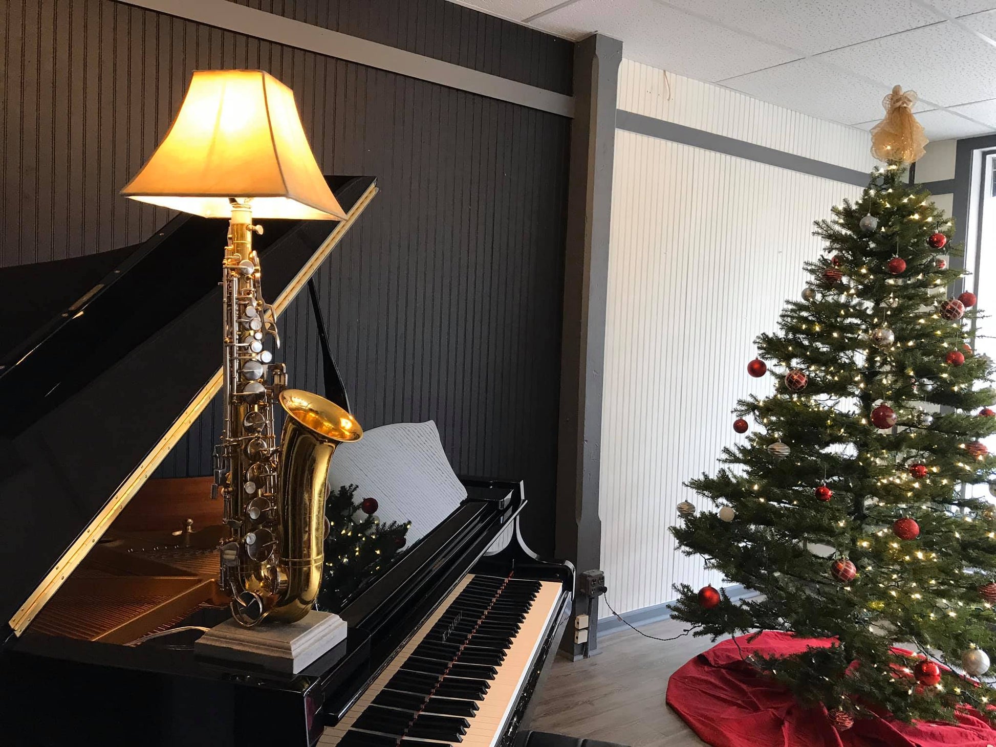 This alto sax once made beautiful music, and now it can give you light on an end table, or on your piano! The base is made of beautifully cut Corian. Includes shade, which may differ from the one shown in picture.